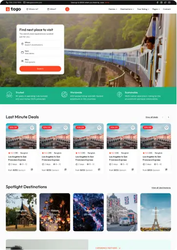 Agencies, tour operators looking to create a professional travel marketplace or directory can benefit from the Togo theme.